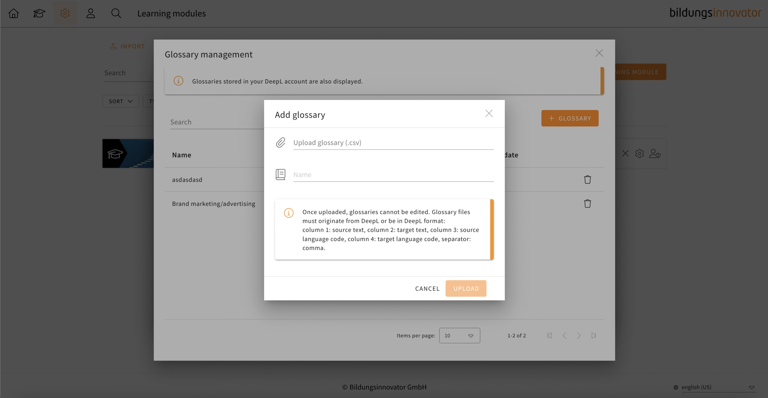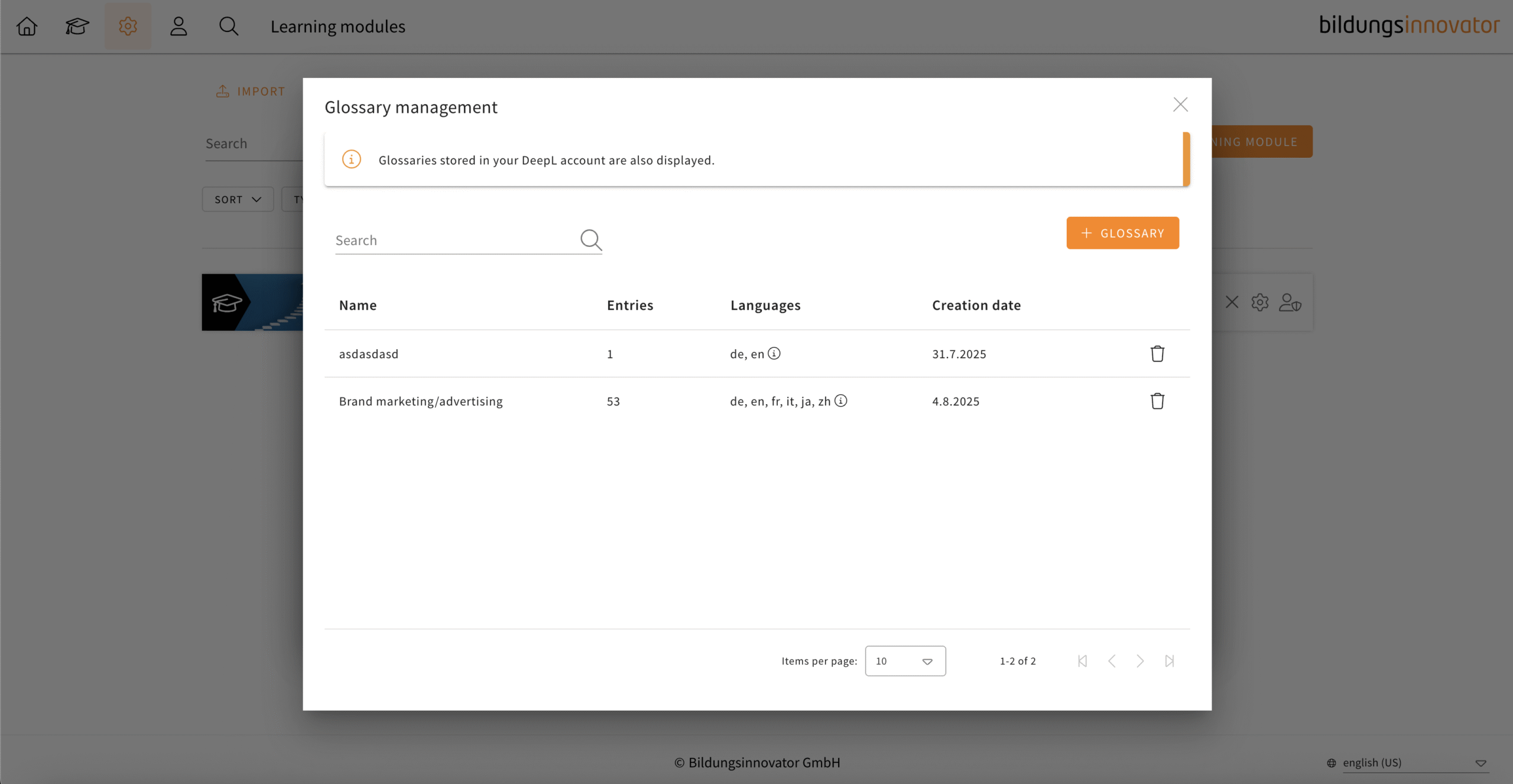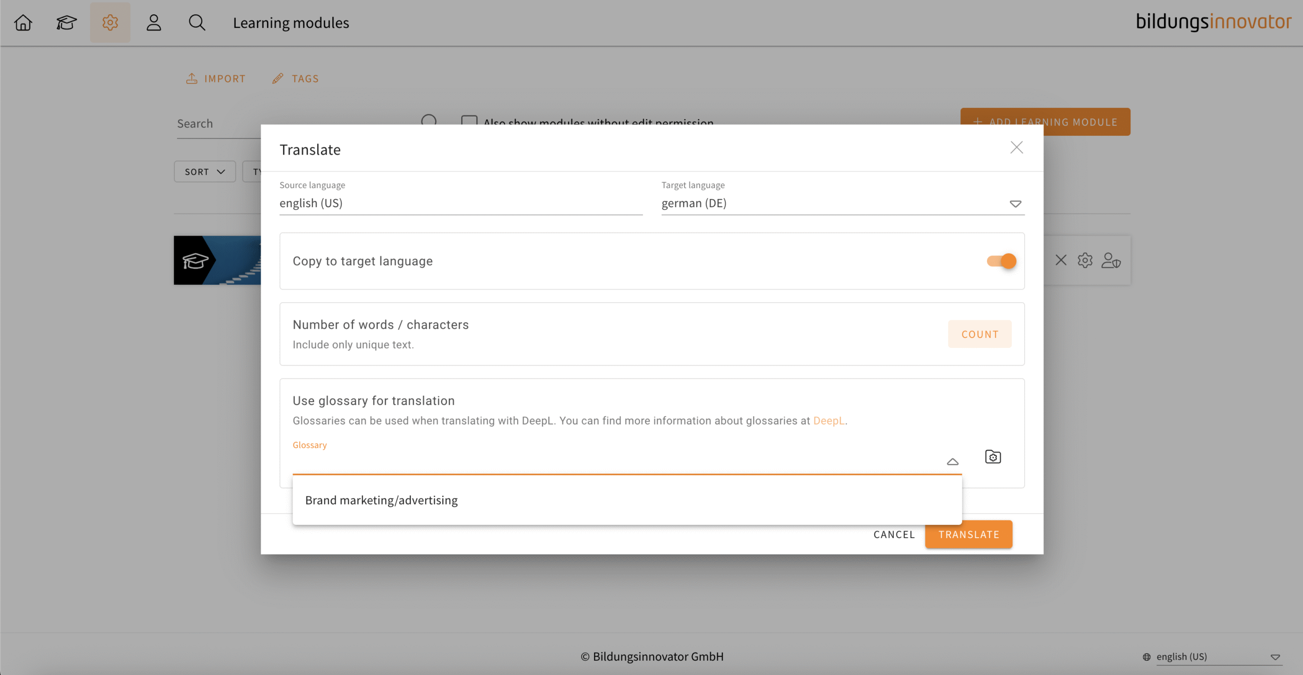 You have been able to translate your learning modules in LXT with DeepL for some time now. When translating, it can happen that certain words require a specific translation. For this purpose, DeepL uses so-called glossaries. These glossaries can now also be taken into account in the translation process in LXT.