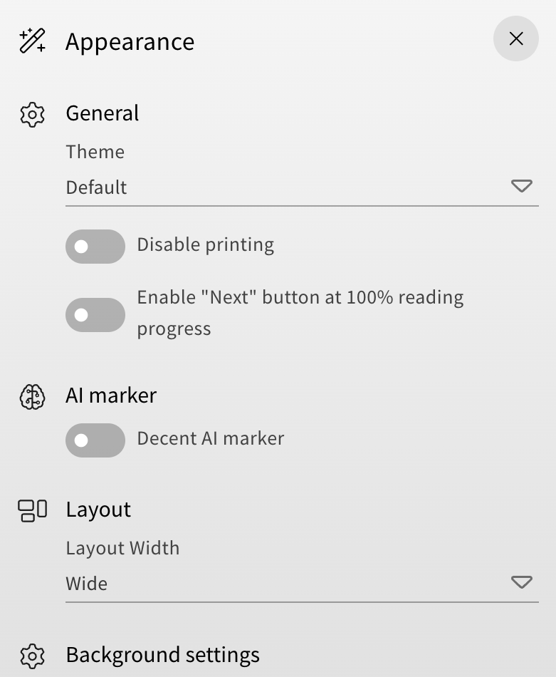 In the training overview, you can now find a new „Navigation settings“ category in the appearance menu (wand icon in the right sidebar). Under this category you will have two new toggles to adjust the navigation options of your training.