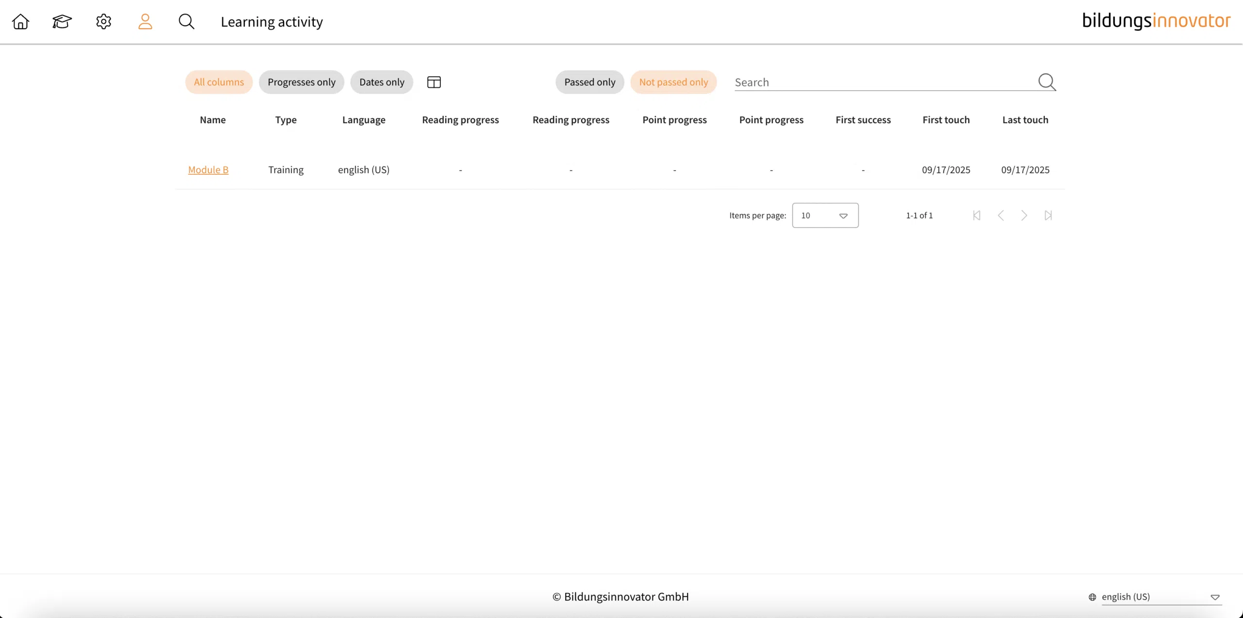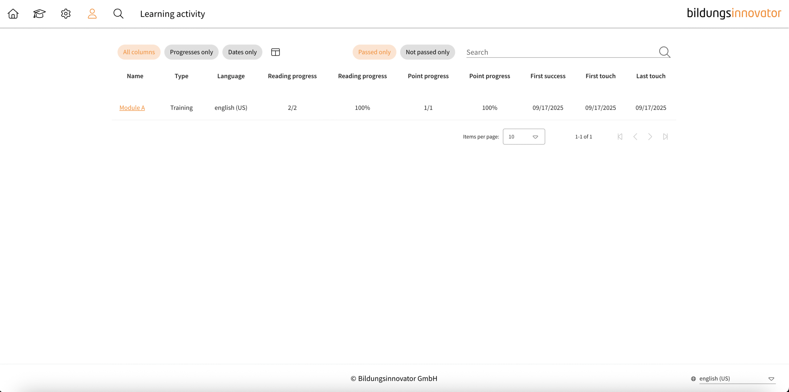 - Show only passed learning modules: „passed only“