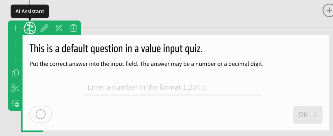 Use the AI to generate even more quizzes: Value input, value slider, date input and order quizzes can now automatically be generated.
