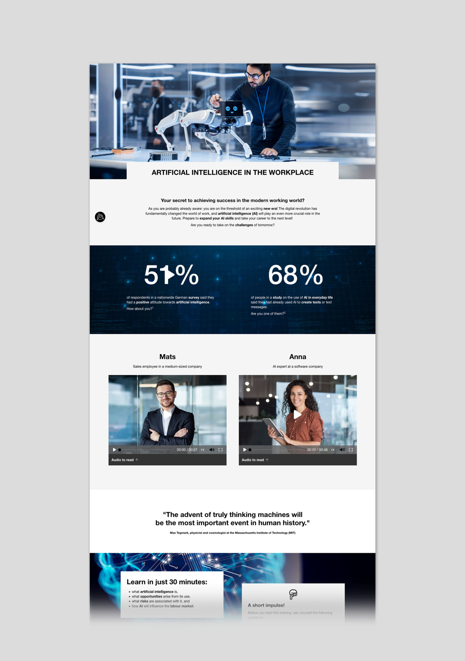 Don’t be afraid of robot colleagues – we’ll show your learners how to rock AI tools. They discover the added value of machines juggling data while they can use their creativity for really important things.
