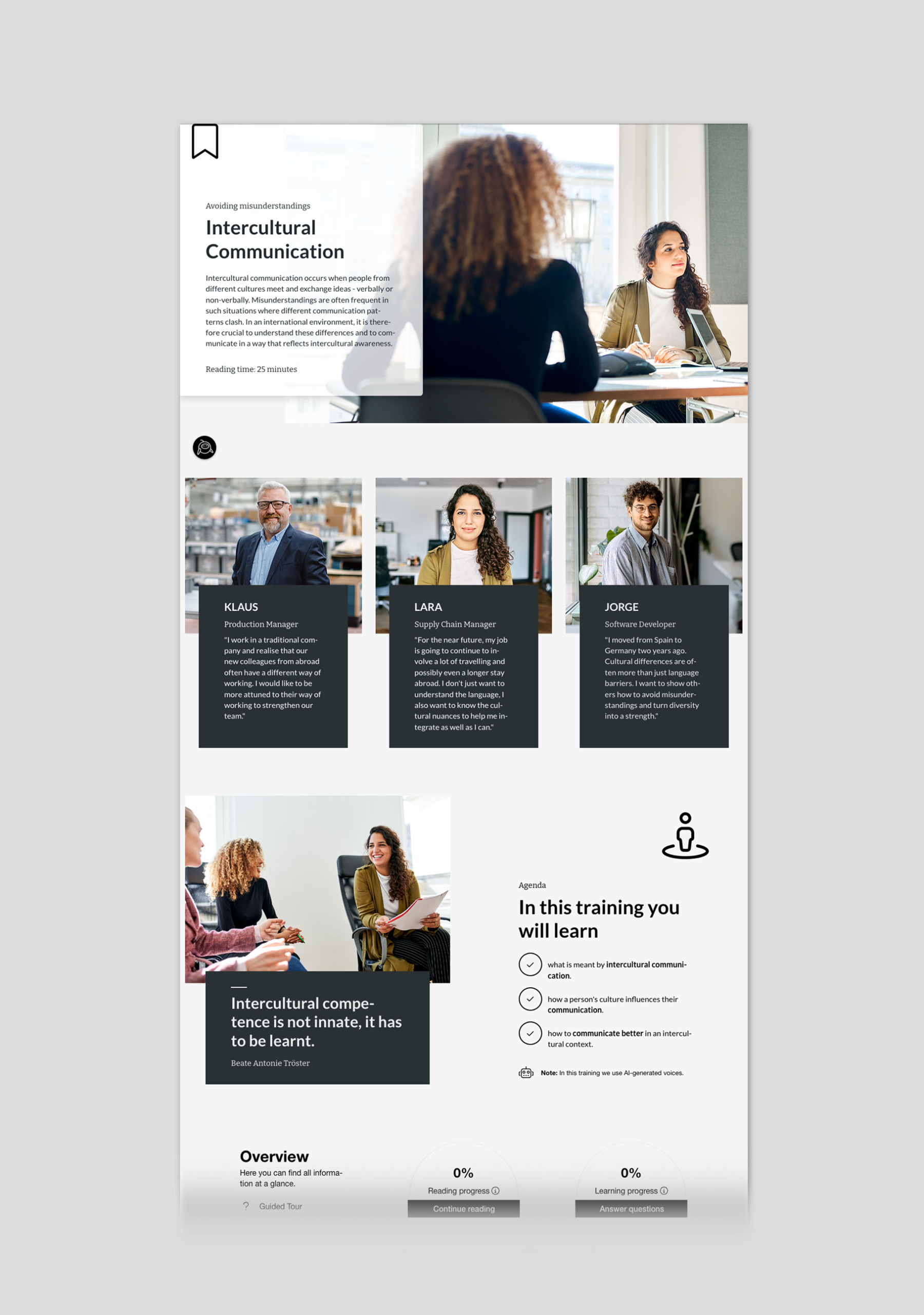 As they generally use different, culturally determined communication patterns, misunderstandings often occur. In this training course, your learners will find out why this is the case and how such misunderstandings can be avoided in future.