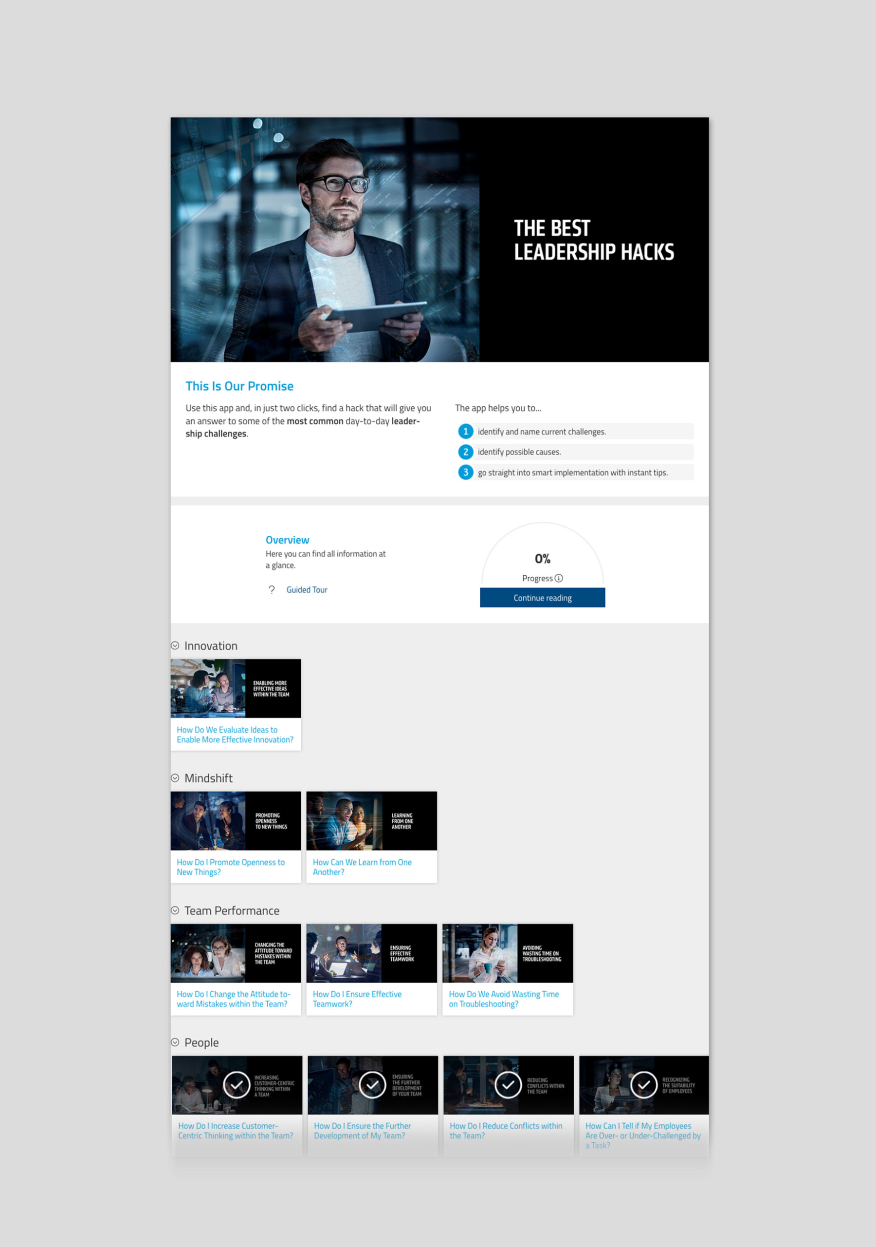 With just two clicks, this app provides practical hacks for the most common challenges in day-to-day management – compact, quick and directly applicable.
