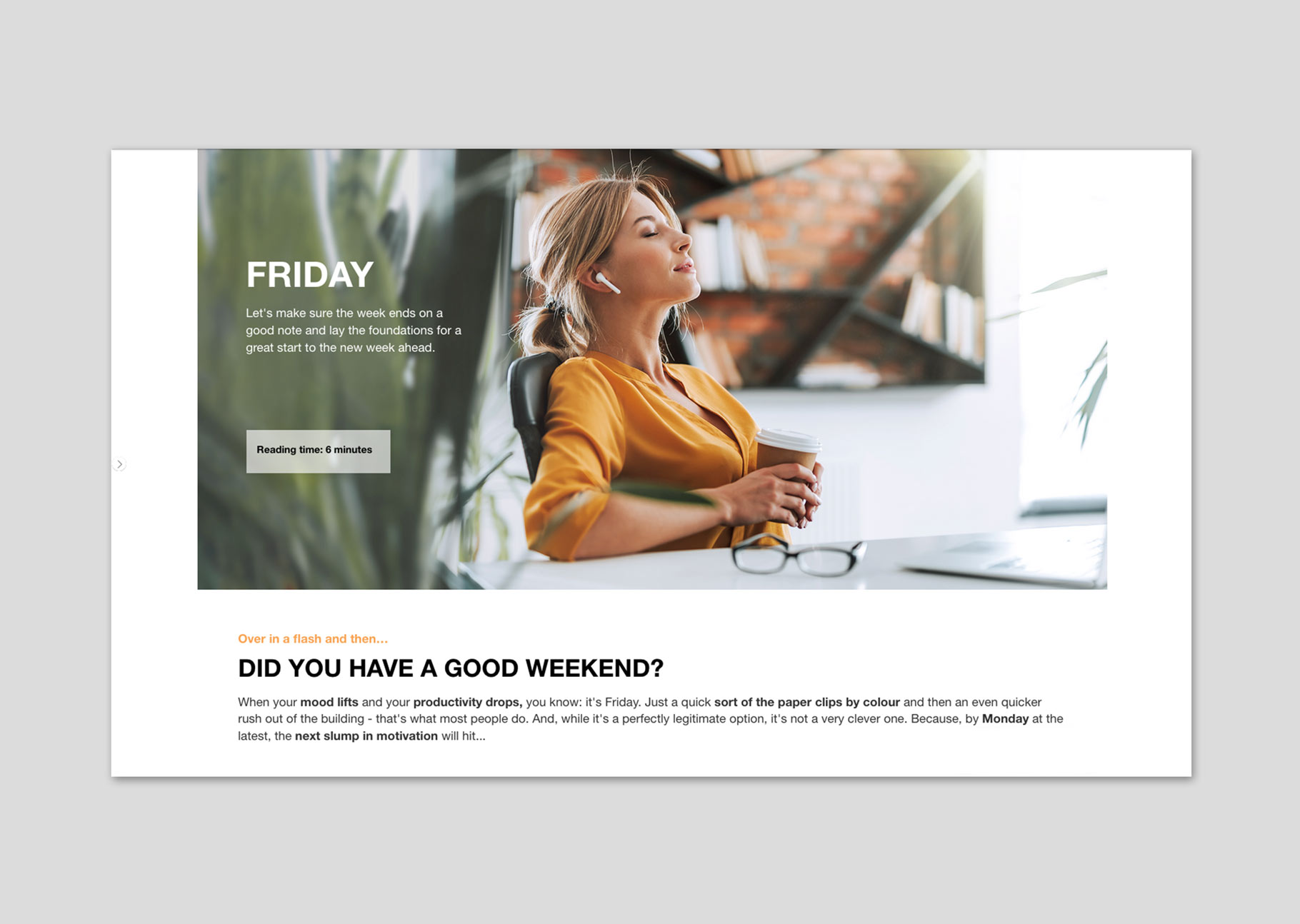 - get through the working week more focused and start the weekend with a good feeling.