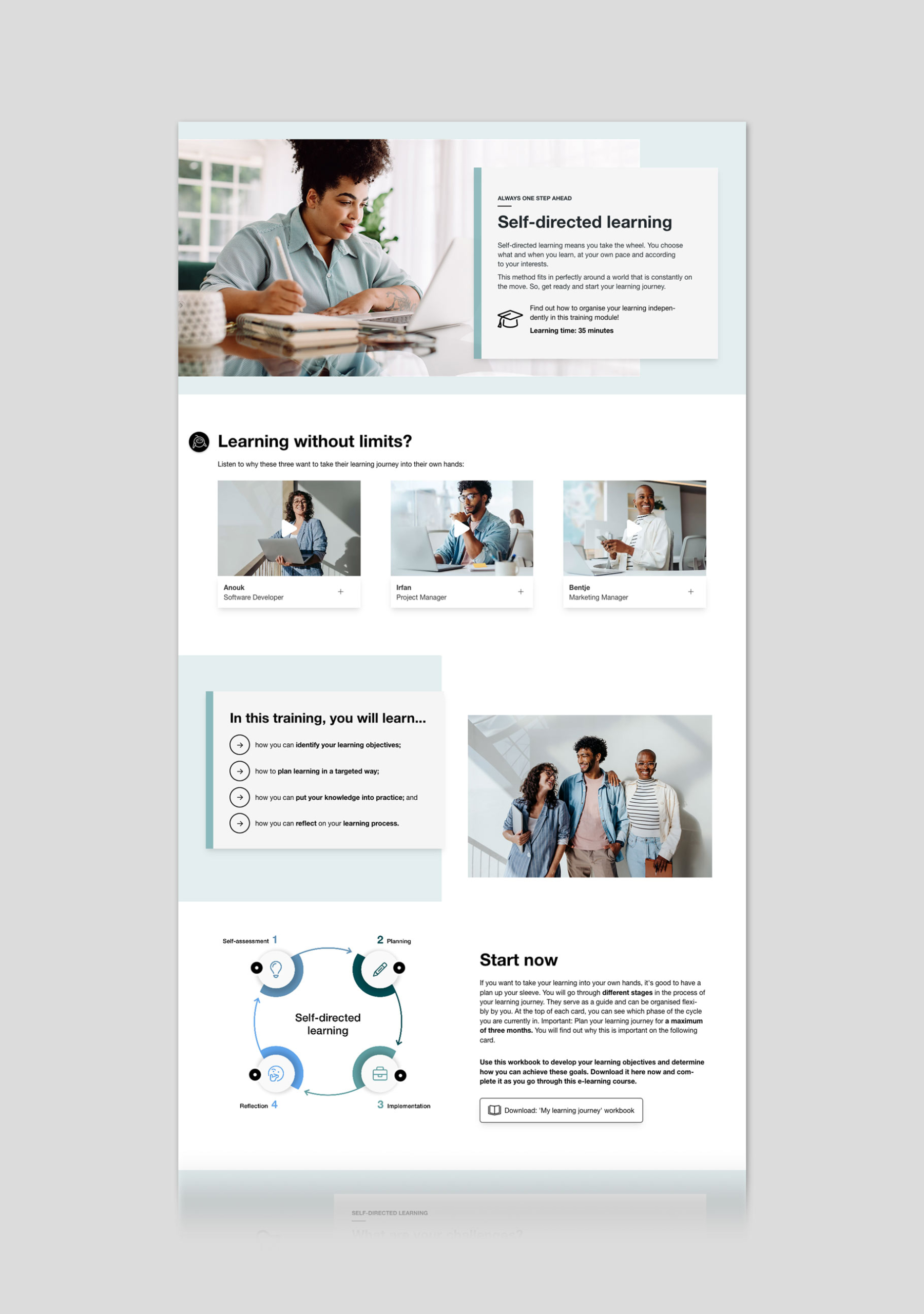 Self-organized learning means taking the steering wheel into your own hands. Each employee chooses what to learn and when, according to their own pace and interests.