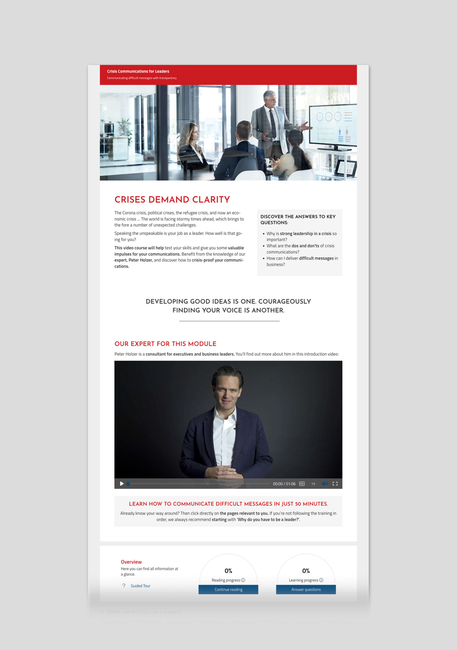 In this video course, people with challenging management tasks benefit from our expert’s knowledge and gain valuable ideas for their crisis communication.