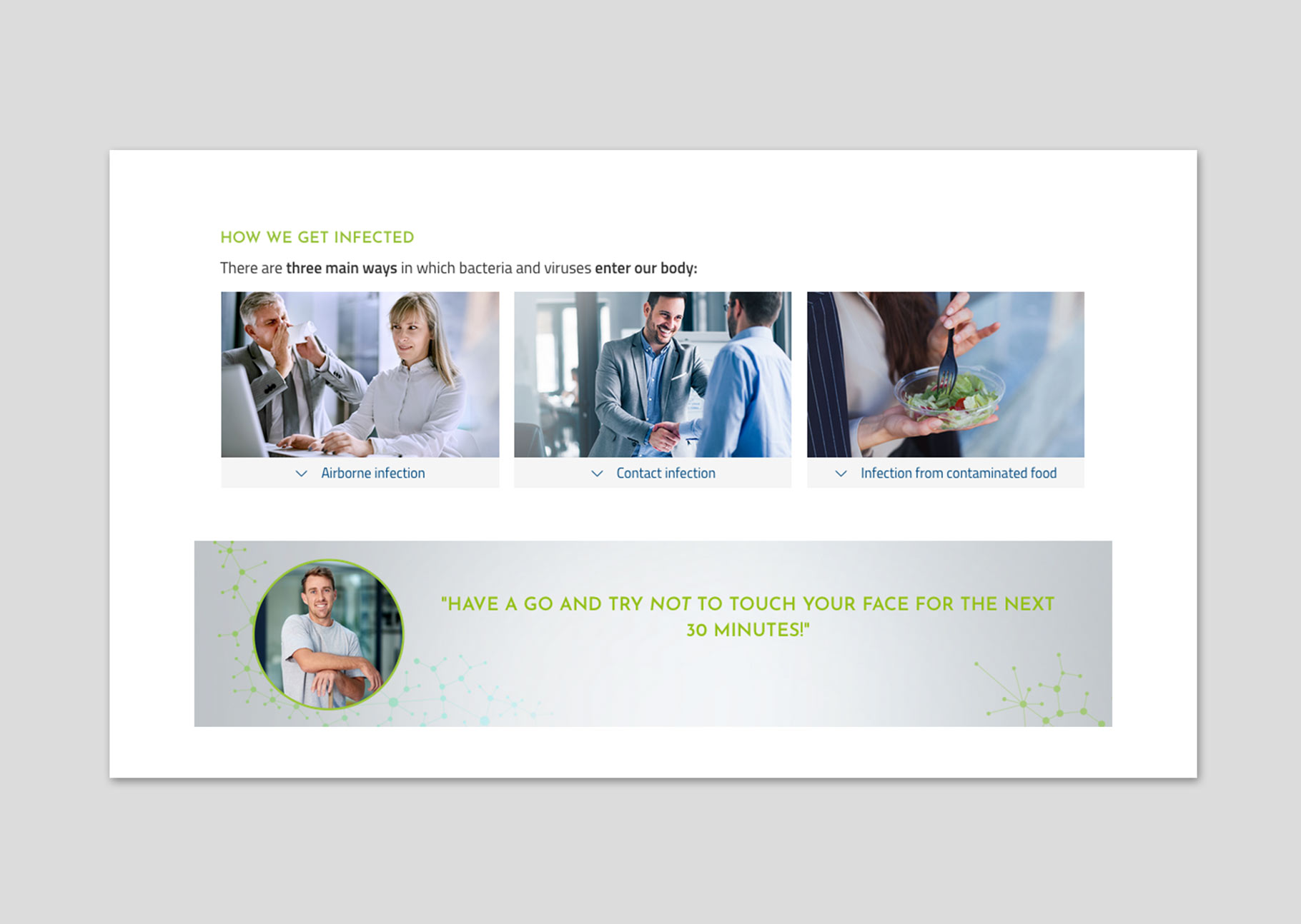 - protectothers from infection through correct behavior.