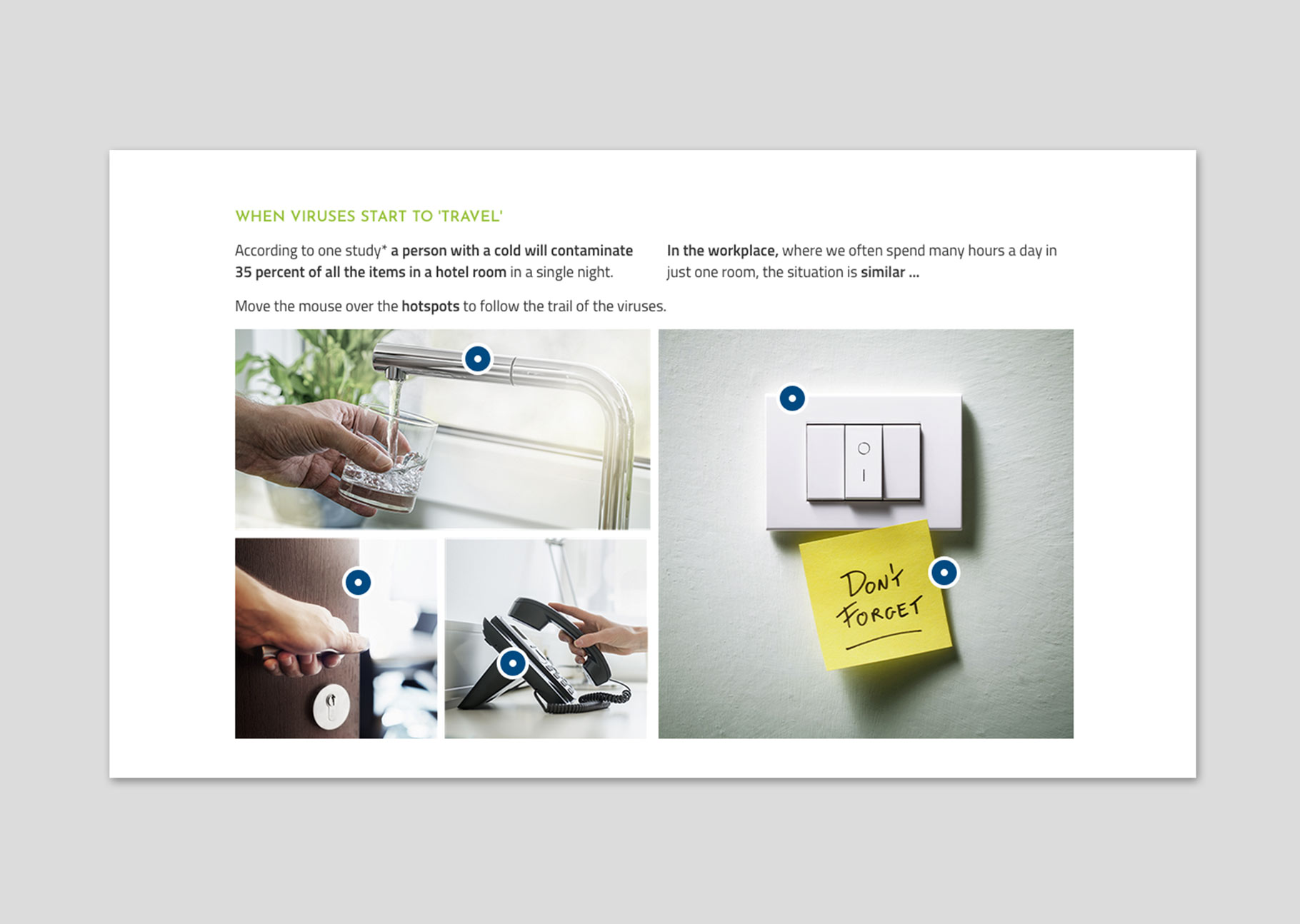 - which viruses and bacteria are “lurking” in the workplace.