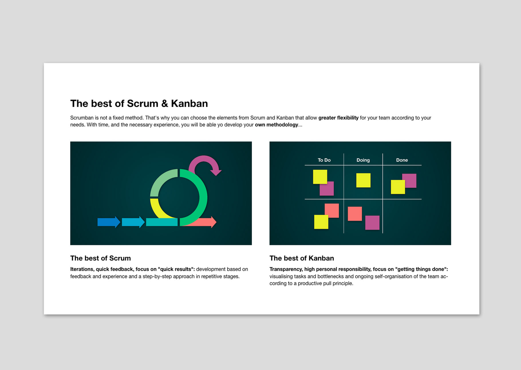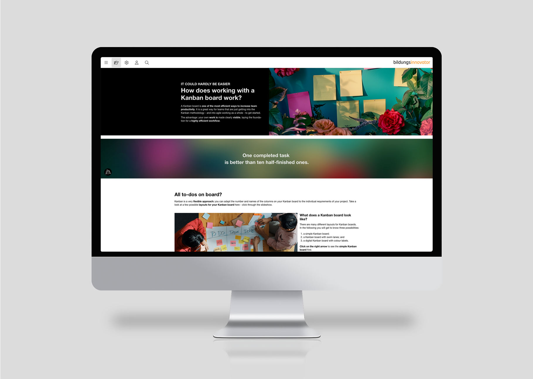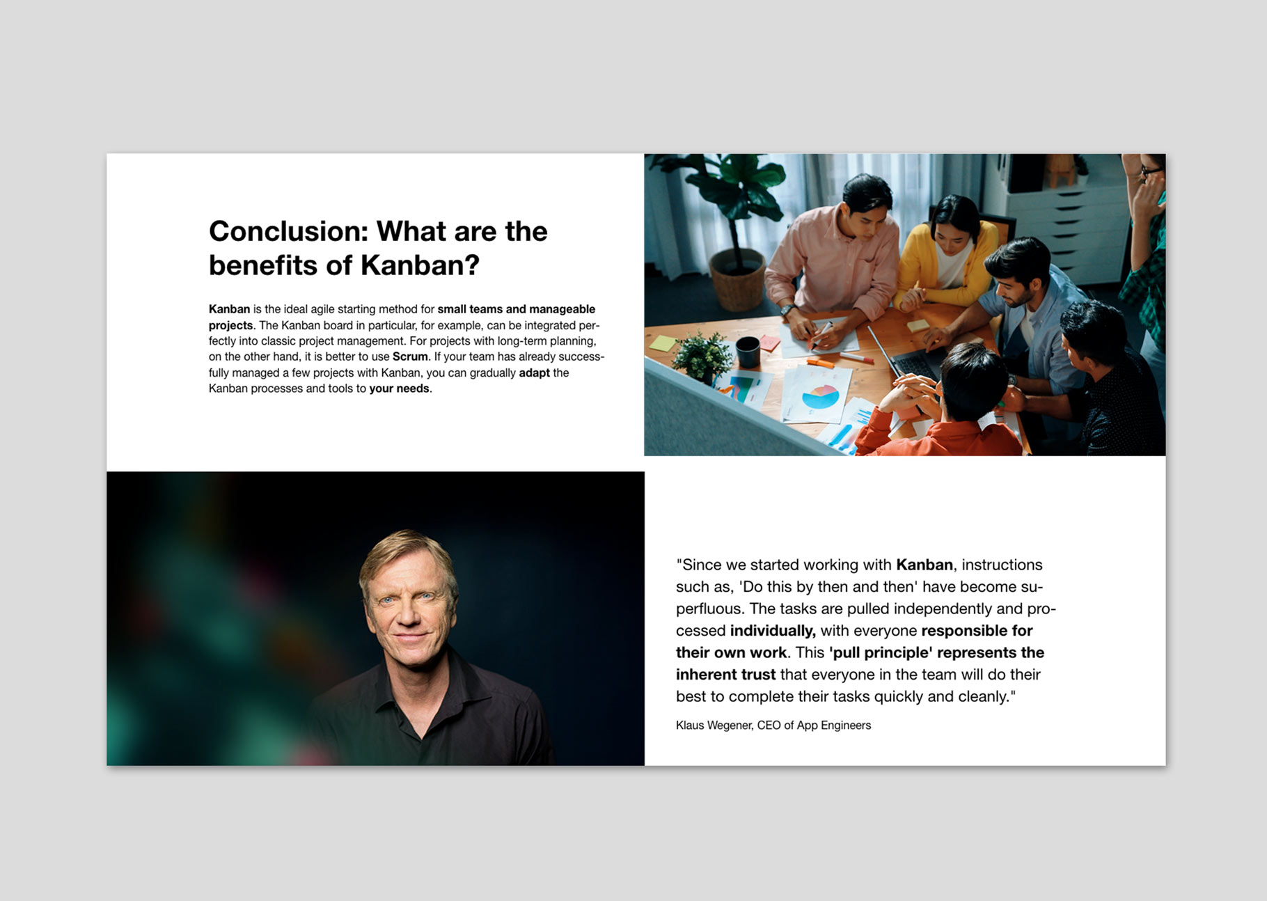 The introduction of Kanban is gentle but effective. Kanban creates order in the project structure and eliminates the source of error “multitasking” once and for all.